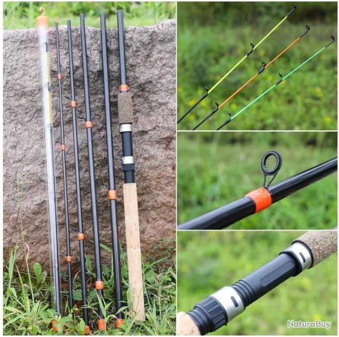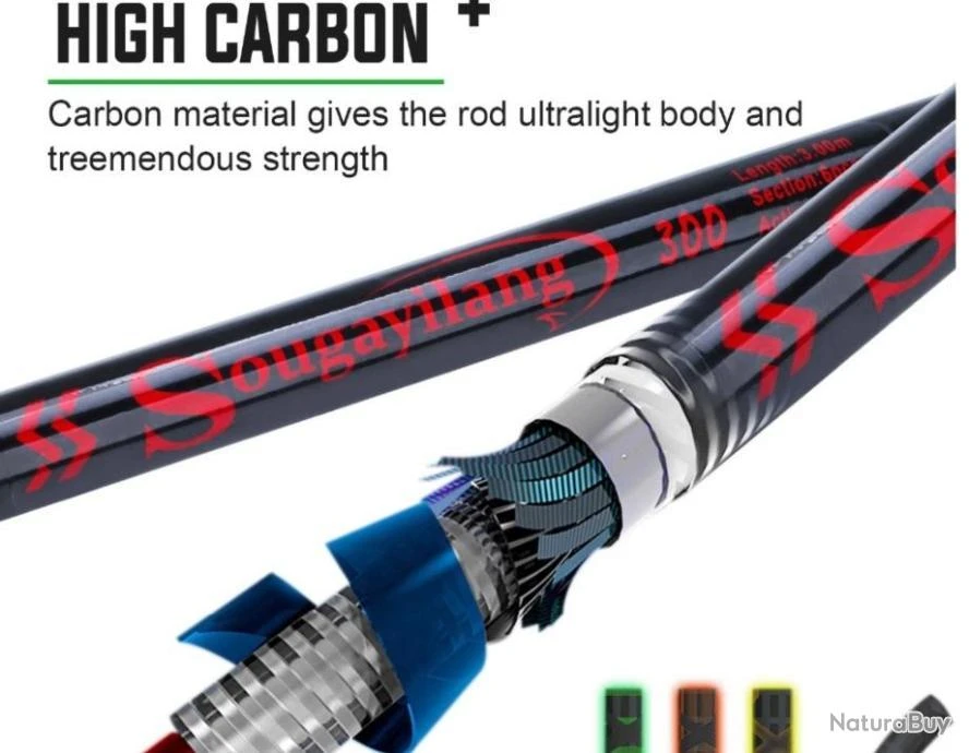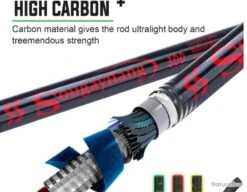 3. Cette canne à pêche est fabriquée en fibre de carbone, solide et durable.