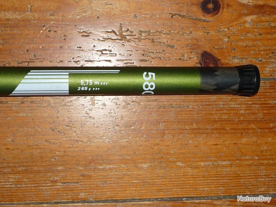 Longueur 5 m 80 , télescopique sauf les deux derniers élements (2 brins télescopiques qui s’emmanche sur la canne), le vrai principe de la barre cantalienne.