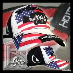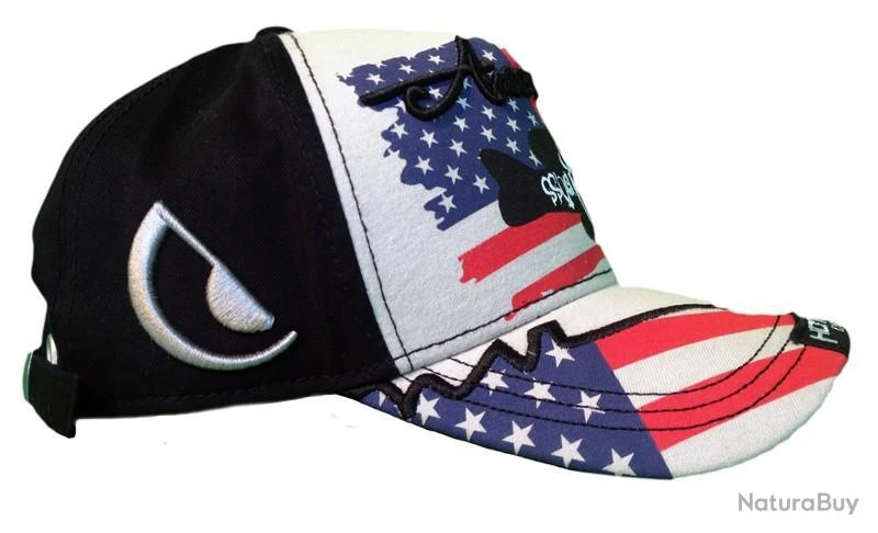Cap avant: sur le fond un drapeau amĂ©ricain stylisĂ© imprimĂ© sur tout le devant avec au centre un dessin Black Bass imprimĂ© en couleur noire et Ă l’intĂ©rieur du poisson le texte «Black Bass» imprimĂ© en blanc (texte Ă©crit au verso, de droite Ă gauche ). Texte «amĂ©ricain» brodĂ© en fil de couleur noir 3D au-dessus du dessin de la basse. VisiĂšre: patch avec logo Hotspot Design cousu au centre de la visiĂšre, patch avec bordures vieillies. Sur le cĂŽtĂ© droit de la visiĂšre, une broderie 3D crĂ©e comme une coupure sur la visiĂšre oĂč est imprimĂ©e une partie du drapeau amĂ©ricain. CĂŽtĂ© gauche: le logo stylisĂ© HOTSPOT eye brodĂ© en fil de couleur gris 3d. Partie arriĂšre: en mĂȘme tissu avec boucle mĂ©tallique pour ajuster la circonfĂ©rence de la casquette. Sur la bande logo Hotspot Design brodĂ©