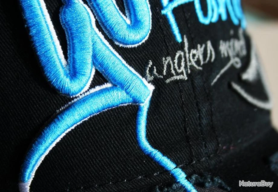 Capuchon devant: sur le cĂŽtĂ© droit, le texte «GO» brodĂ© en 3D avec du fil bleu clair. A partir du texte GO commence une ligne de pĂȘche brodĂ©e de couleur bleu clair 3d qui arrive sur la visiĂšre et qui se termine par un crochet stylisĂ©. Sur le cĂŽtĂ© gauche, le texte «Fishing» brodĂ© en bleu clair et le texte «Angler’s mind» brodĂ© en anthracite, le logo stylisĂ© HOTSPOT eye brodĂ© en fil de couleur anthracite 3D. VisiĂšre: visiĂšre avec des coupes irrĂ©guliĂšres avec tissu de fond de couleur camouflage nuit camouflage et bordures vieillies sur les coupes. Ligne de pĂȘche et crochet stylisĂ© en broderie 3D couleur bleu clair arrivant au centre de la visiĂšre. CĂŽtĂ© gauche: patch avec logo brodĂ© Hotspot Design.