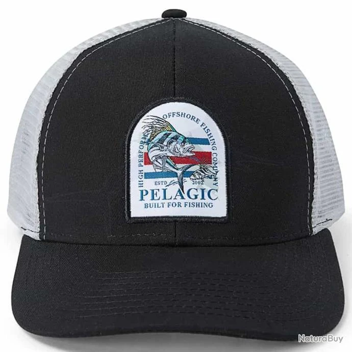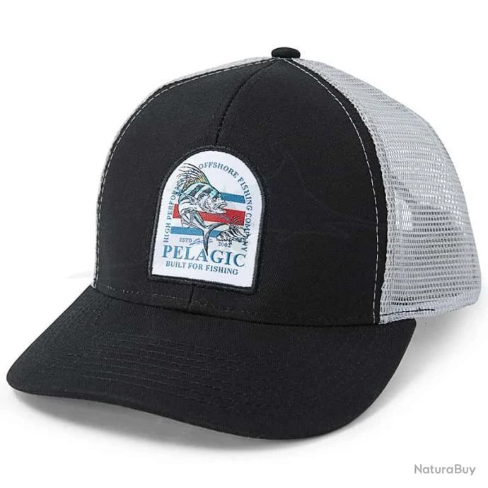 Casquette style camionneur avec un écusson de poisson-coq du Costa Rica brodé sur le devant.