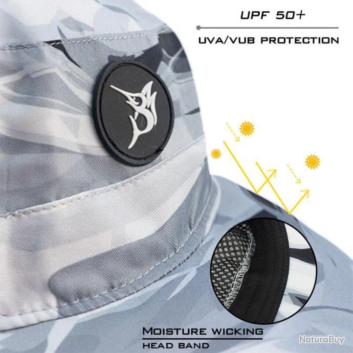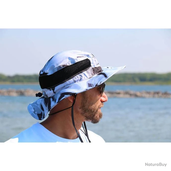 Le chapeau Bob Marlin offre une grande protection solaire, est rĂ©sistant Ă l’eau et livrĂ© avec des panneaux de ventilation d’air.