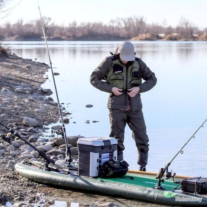 Le gilet Kaaki VERT est spécialement conçu pour la pêche en rivière ou en bord de mer. Un gilet Kaaki très confortable avec du néoprène aux épaules avec un maximum de rangement grâce à ses 5 poches ventrales bien réparties.