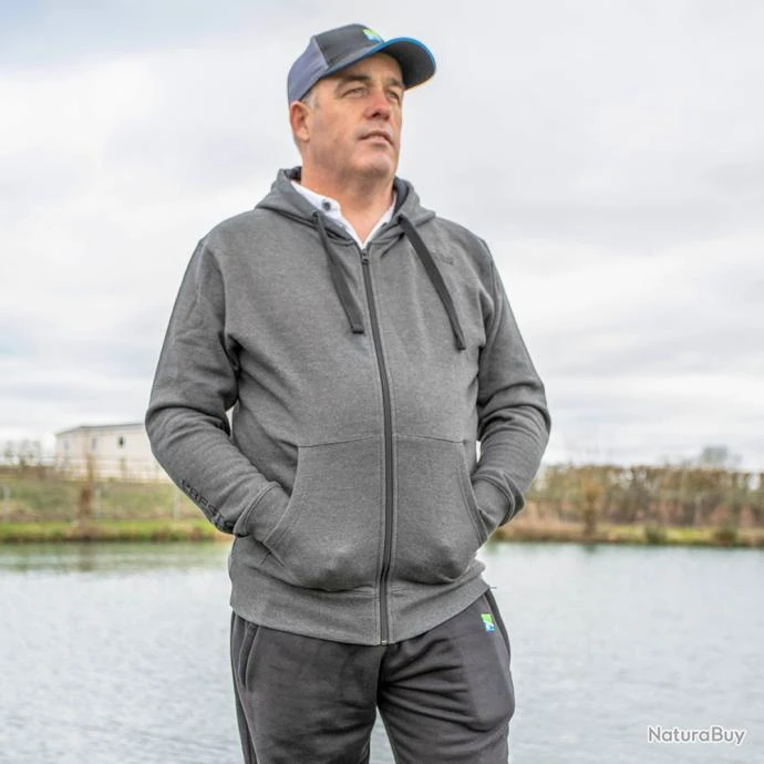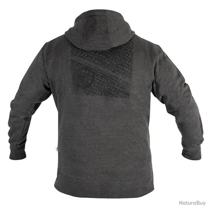 Sweat Ă zip gris 80% coton, 20% polyester avec logo imprimĂ© caoutchoutĂ© Ă l’avant et Ă l’arriĂšre. Zip YKK haute qualitĂ©. Disponible de M Ă 3XL.