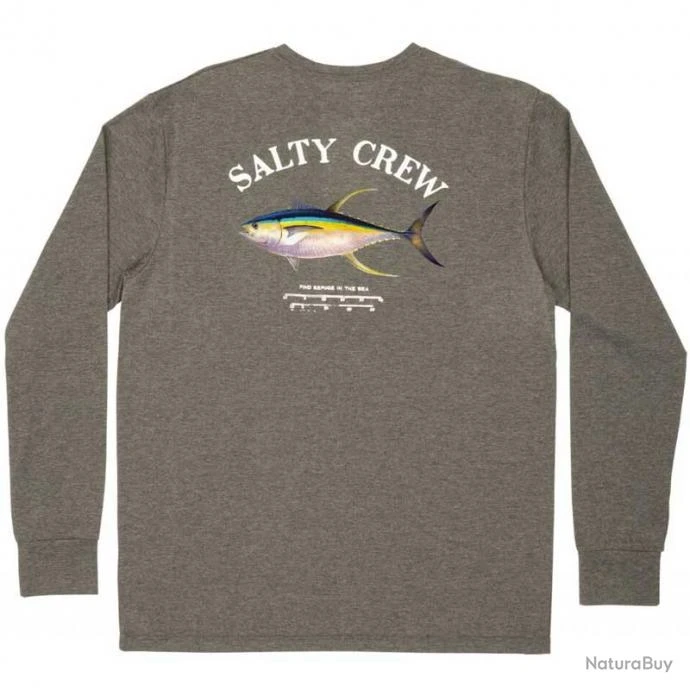 Le L-shirt homme AHI MOUNT LS TECH de chez Salty Crew est fabriquĂ© Ă partir de 69% Polyester – 31% de coton. T-shirt Technique Ă manches longues, sĂ©rigraphiĂ© sur la poitrine et le dos . couleur gris foncĂ©.
