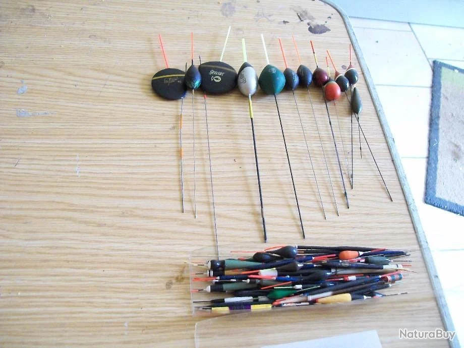 lot de flotteurs de peche au coup : 10 flotteurs classiques de 1gr Ă 10gr,2 flotteurs plats 4gr et 8 gr,54 flotteurs de petite portance soit 66 flotteurs au total