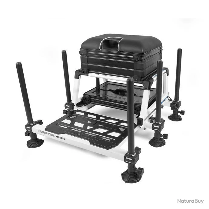 Station Inception Le nouveau panier siĂšge Inception Station a Ă©tĂ© conçu autour du succĂšs des paniers siĂšges Inception et possĂšde de nombreuses caractĂ©ristiques propres Ă la gamme tels que le systĂšme de fermeture Mag-Lok, systĂšme de maintien de la plateforme et les poignĂ©es de serrages pourvues d’un revetement « Soft-touch » Construit autour d’un chassis trĂšs rĂ©sistants, ce panier siĂšge est disponible en version blanche ou graphite et possĂšde de nombreuses options de rangement. Le tiroir de cotĂ© profond qui l’Ă©quipe est parfait pour y ranger vos accessoires tandis que l’autre tiroir possĂšde des compartiments amovibles afin d’y placer vos boites Ă bas de ligne, plioirs ou autres. Pour completer le tout, un tiroir peu profond se situe sous le coussin et est parfait pour placer des lignes. La malette est composĂ©e d’un casier de 26mm et d’un couvercle, vous pouvez y ajouter des casiers supplĂ©mentaires Ă votre convenance. Le panier siĂšge est livrĂ© avec 6 pieds tĂ©lescopiques permettant une facilitĂ© d’instalation sur tout les types de terrain.