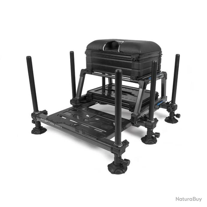 – La station Inception est munie Ă©galement de 6 pieds tĂ©lescopiques pour faciliter l’installation au bord de l’eau et d’une mallette composĂ©e d’un casier (26mm) avec son couvercle