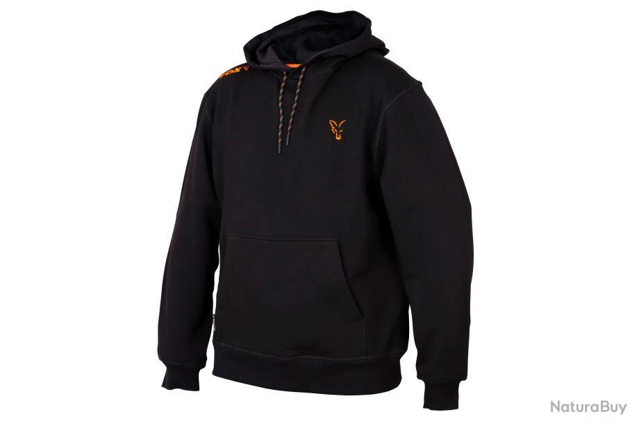 Poche kangourou avec petite poche interne se fermant par bouton pressionCordons de serrage orange et noir