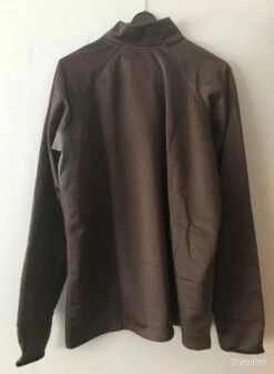 Sweat neuf. Couleur chocolat. Col zippĂ©, passage du pouce aux poignets, soufflets d’aisance respirants sous les bras.