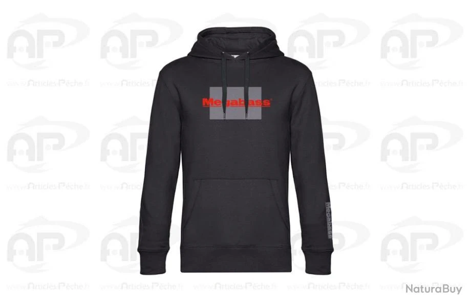 Sweat à capuche Megabass EVO avec logo sur le devant et inscription « MEGABASS » sur le bout de la manche.