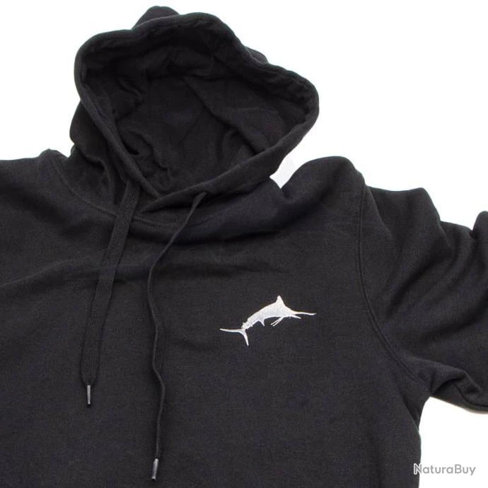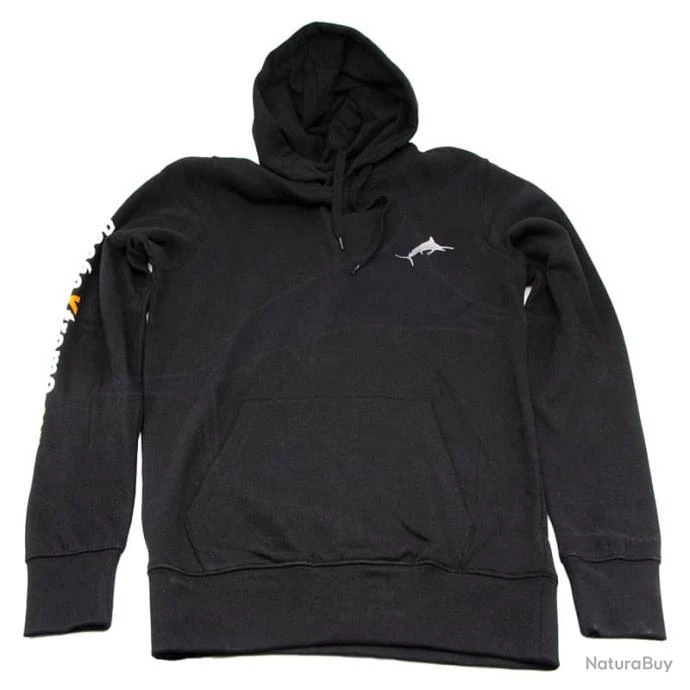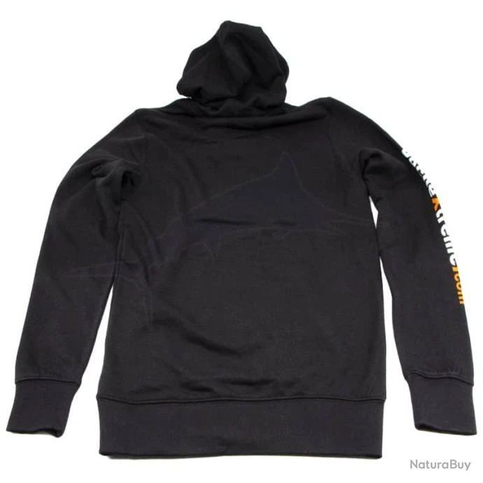 Sweat-shirt noir PecheXtreme Ă capuche avec poche kangourou Ă l’avant.