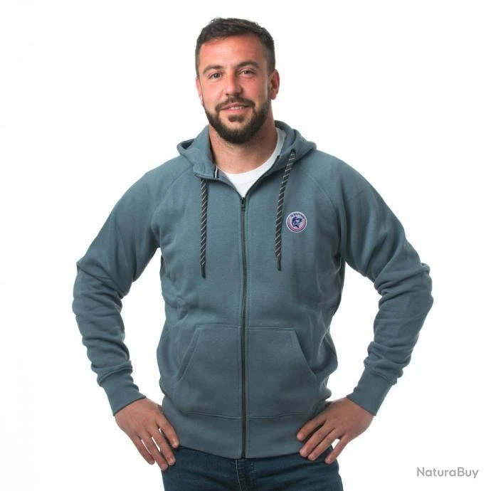 Sweat zippé homme La Ligne Française avec cordons et tour de cou interieur contrastés,double teinture.
