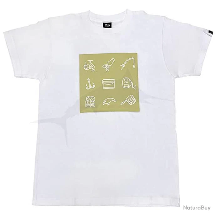 Le nouveau T-shirt de Daiwa est en coton avec un imprimĂ© sur le thĂšme de la pĂȘche.
