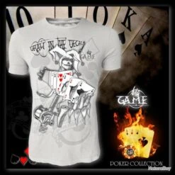 T-shirt manches courtes de qualitĂ© supĂ©rieure, 100% coton peignĂ© ring spun, col rond, 140g / mÂČ, portabilitĂ© normale. Confort maximum obtenu par l’utilisation du meilleur coton ring-spun. Le coton ring-spun est fabriquĂ© selon des mĂ©thodes de filage capables de produire un fil de coton trĂšs fin, plus rĂ©sistant, plus doux et agrĂ©able Ă habiller sur la peau.T-shirt manches courtes de qualitĂ© supĂ©rieure, 100% coton peignĂ© ring spun, col rond, 140g / mÂČ, portabilitĂ© normale. Confort maximum obtenu par l’utilisation du meilleur coton ring-spun. Le coton ring-spun est fabriquĂ© selon des mĂ©thodes de filage capables de produire un fil de coton trĂšs fin, plus rĂ©sistant, plus doux et agrĂ©able Ă habiller sur la peau.Le BIG GAME – DRAW IN THE DECK est basĂ© sur l’idĂ©e que le Joker ( pĂȘcheur) est capable d’attraper plusieurs types de poissons et le jeu de cartes est soulignĂ© comme Ă©tant la mer, choisissez une carte pour voir ce que vous pouvez attraper. Les cartes de poker sont finalisĂ©es avec une impression transparente qui leur permet d’apparaĂźtre comme de vraies cartes de poker.La collection Poker se distingue par notre crĂ©ativitĂ©, notre design spĂ©cial et notre inspiration mode, nous avons combinĂ© les cartes Ă jouer de poker avec la passion de la pĂȘche, de plus la qualitĂ© et l’impression est bien au-dessus de vos meilleures attentes.