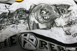 Un t-shirt design spĂ©cial oĂč nous avons utilisĂ© des dessins faits Ă la main pour crĂ©er ce produit unique et inimitable. Un pur exemple d’un effort artistique commun, ce qui en fait une oeuvre d’art vraiment unique et un article de mode Ă collectionner.