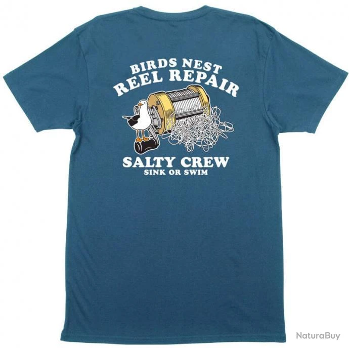 Le T-shirt S/S Birdsnest Prenium haut de gamme de chez Salty Crew est fabriqué 100% Coton , motif Moulinet sur la poitrine et le dos .