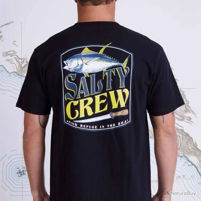 Le T-shirt Filet Heather standard manche courte de chez Salty Crew est fabriqué de 60% Coton et 40% Polyester, avec un graphismes de thon sur la poitrine et le dos .