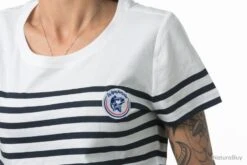 100% coton biologique. Coupe droite. Lavage aux enzymes. Encolure ronde avec bord-côte 1×1. Rayures tricotées. Bande de propreté au col. Finition double aiguille bas de manches et bas de vêtement.160 g/m2