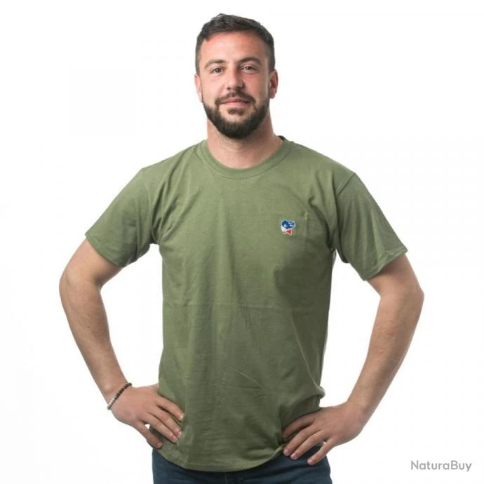 100% coton peigné biologique. Label « Origine France Garantie ». Coupé / cousu. Encolure ronde en bord-côte. Bande de propreté ton sur ton dans l’encolure (prolongement dos-épaule). Vignette clip Bleu / Blanc / Rouge sur le bas de manche gauche au porter. 170 gr.